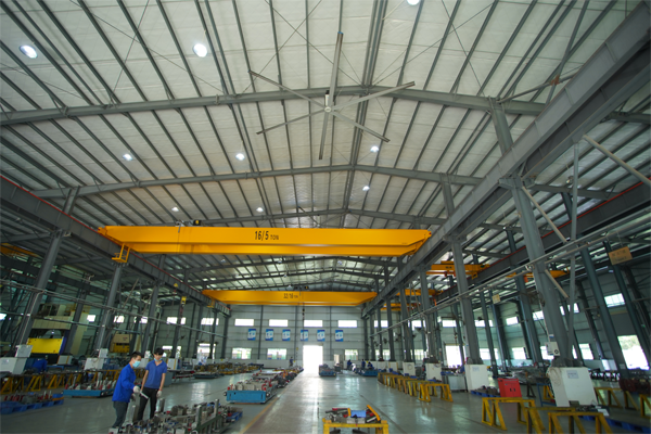 (1)工業(yè)大風(fēng)扇采用美國螺旋槳式流線型7.3米葉片,完美的流線型讓用戶享受到1-3m/s的立體式送風(fēng),形成大自然一樣的微風(fēng)系統(tǒng);