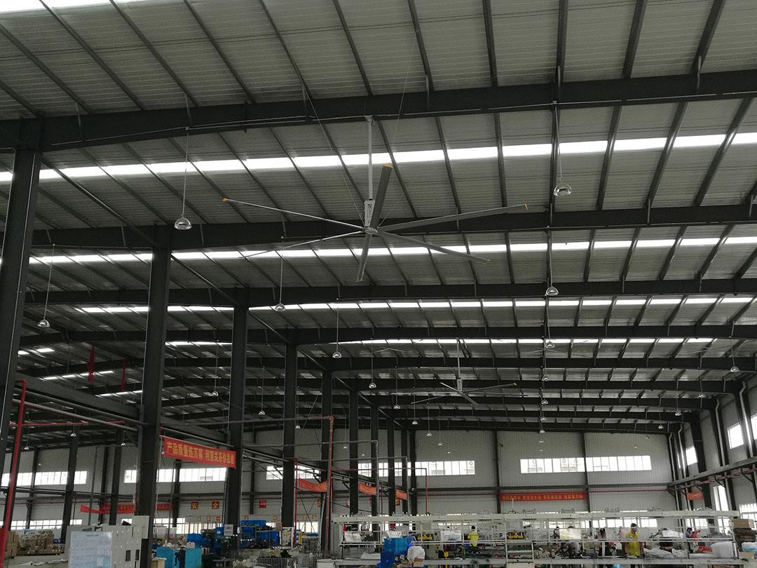 工業(yè)風(fēng)扇是一款廣泛應(yīng)用于工業(yè)廠房、物流倉(cāng)儲(chǔ)、候車室、展覽館、體育館、商超等等高大空間,作為空間通風(fēng),人員降溫的一種常見(jiàn)工業(yè)用機(jī)器。比起傳統(tǒng)的暖通空調(diào)和小型的高速風(fēng)機(jī),它有無(wú)可比擬的應(yīng)用優(yōu)勢(shì),工業(yè)大風(fēng)扇耗電小,風(fēng)量大,單臺(tái)覆蓋面積可達(dá)1200平方米,堪稱高大空間通風(fēng)降溫的完美解決方案。